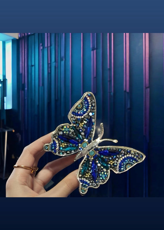 Sterling Silver Butterfly Dark Blue Czechoslovakian Crystals Handmade Set