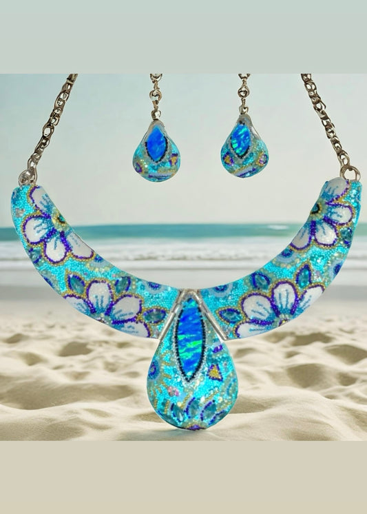 Sterling Silver Teardrop Light Blue Czechoslovakian Crystals Handmade Set