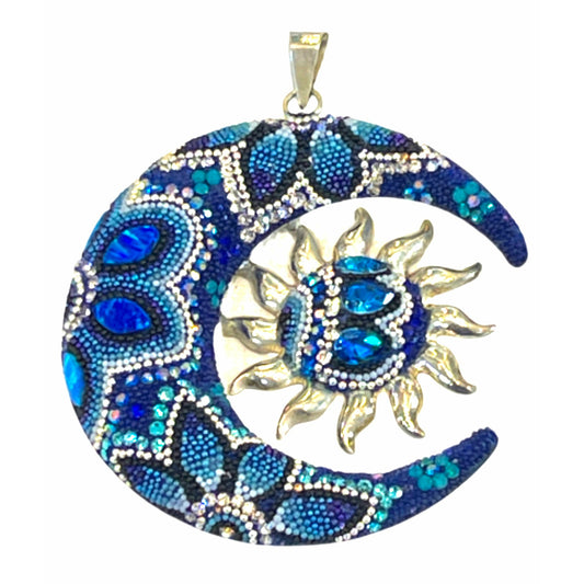Sterling Silver Moon & Sun Dark Blue Czechoslovakian Crystals Handmade Set