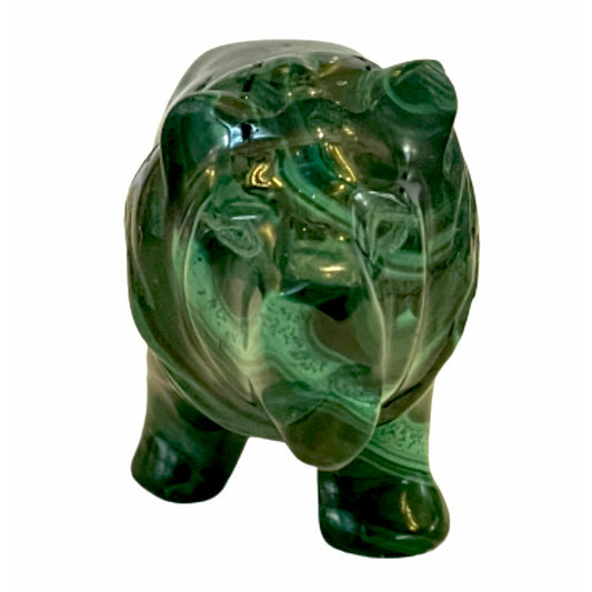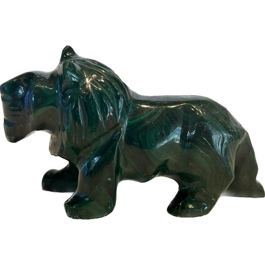 4 Inches Hand Carved Malachite Artisan Lion Carving