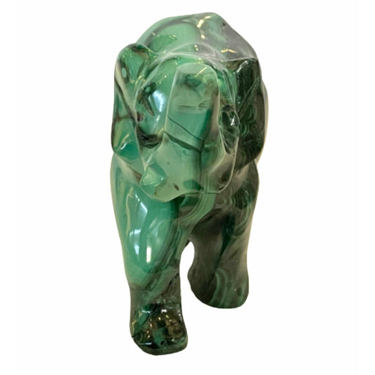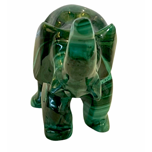 5 Inches Hand Carved Malachite Artisan Elephant Carving