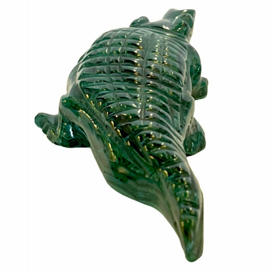 5 Inches Hand Carved Malachite Artisan Crocodile Carving