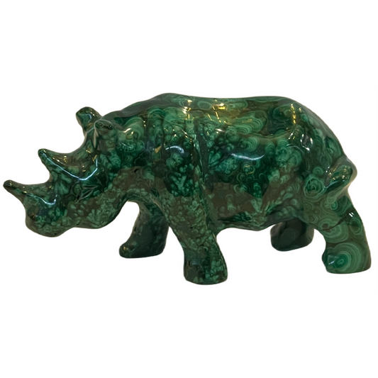 3.5 Inches Hand Carved Malachite Artisan Rhinoceros Carving