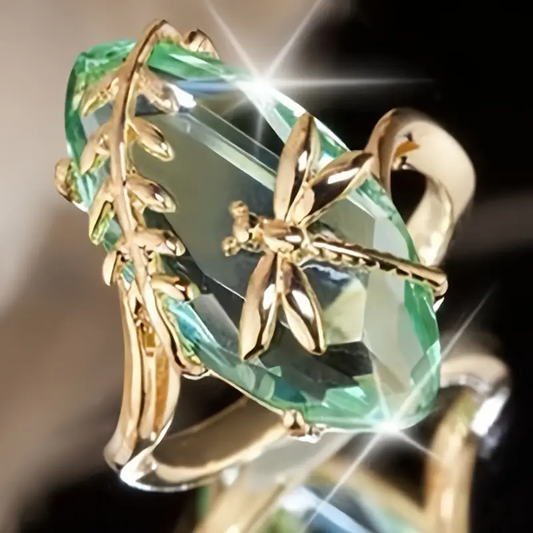 Elegant Green Amethyst Dragonfly Ring - Crystal Zirconia