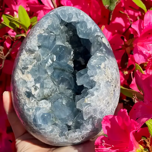 Natural Blue Celestite Crystal Cluster Quartz Geode – Egg Shape (2.2")