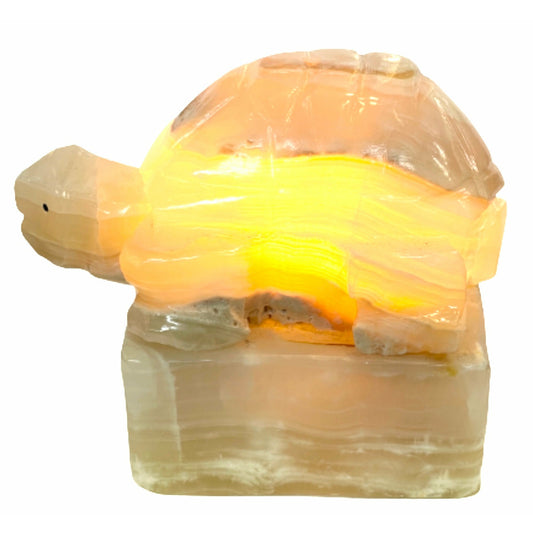 6 Inch White Onyx High-Quality Marble Turtle Lamp