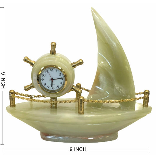 9 Inch Massive Green Onyx High-Quality Sail Boat Clock