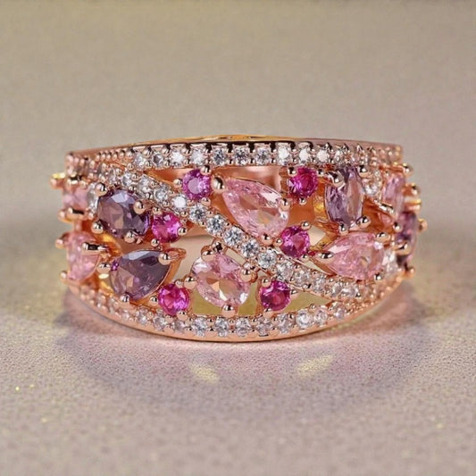 14 K Rose Gold Plated Pink Sapphire Ring