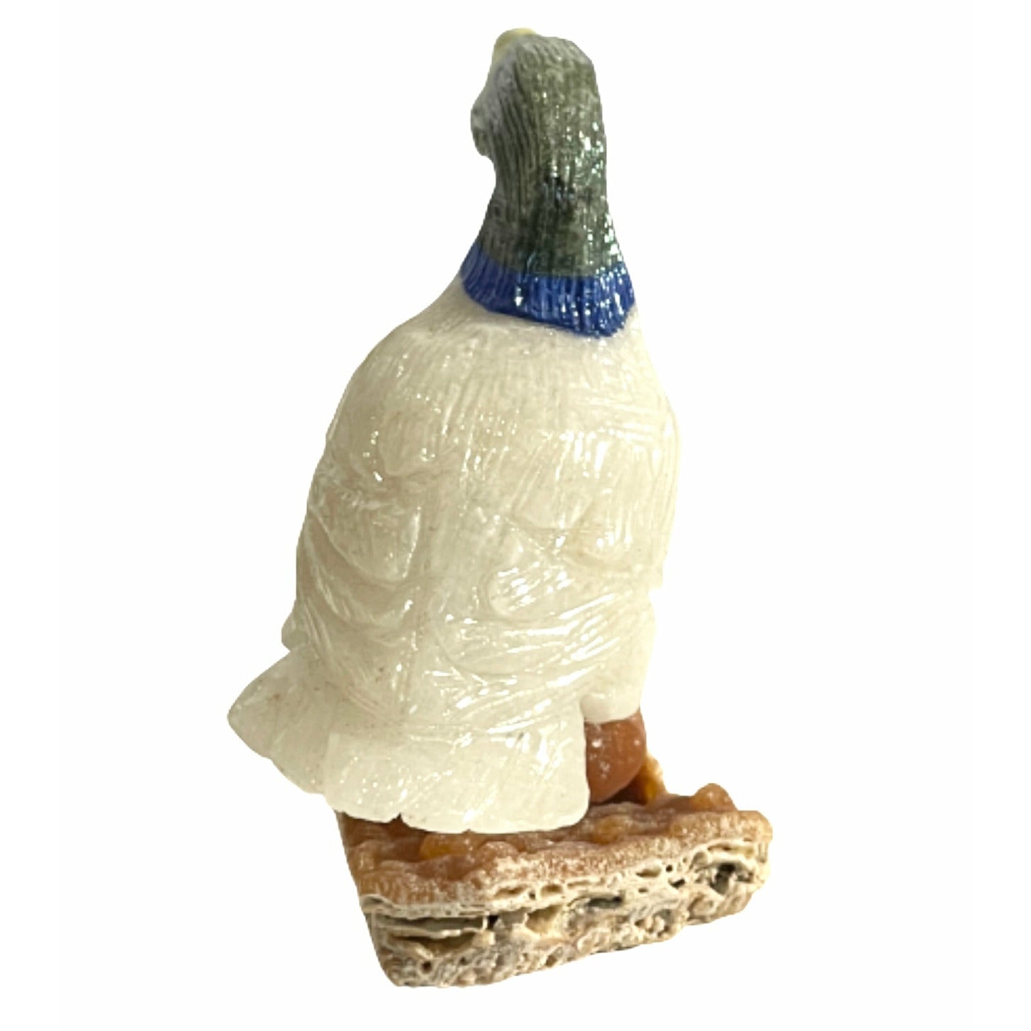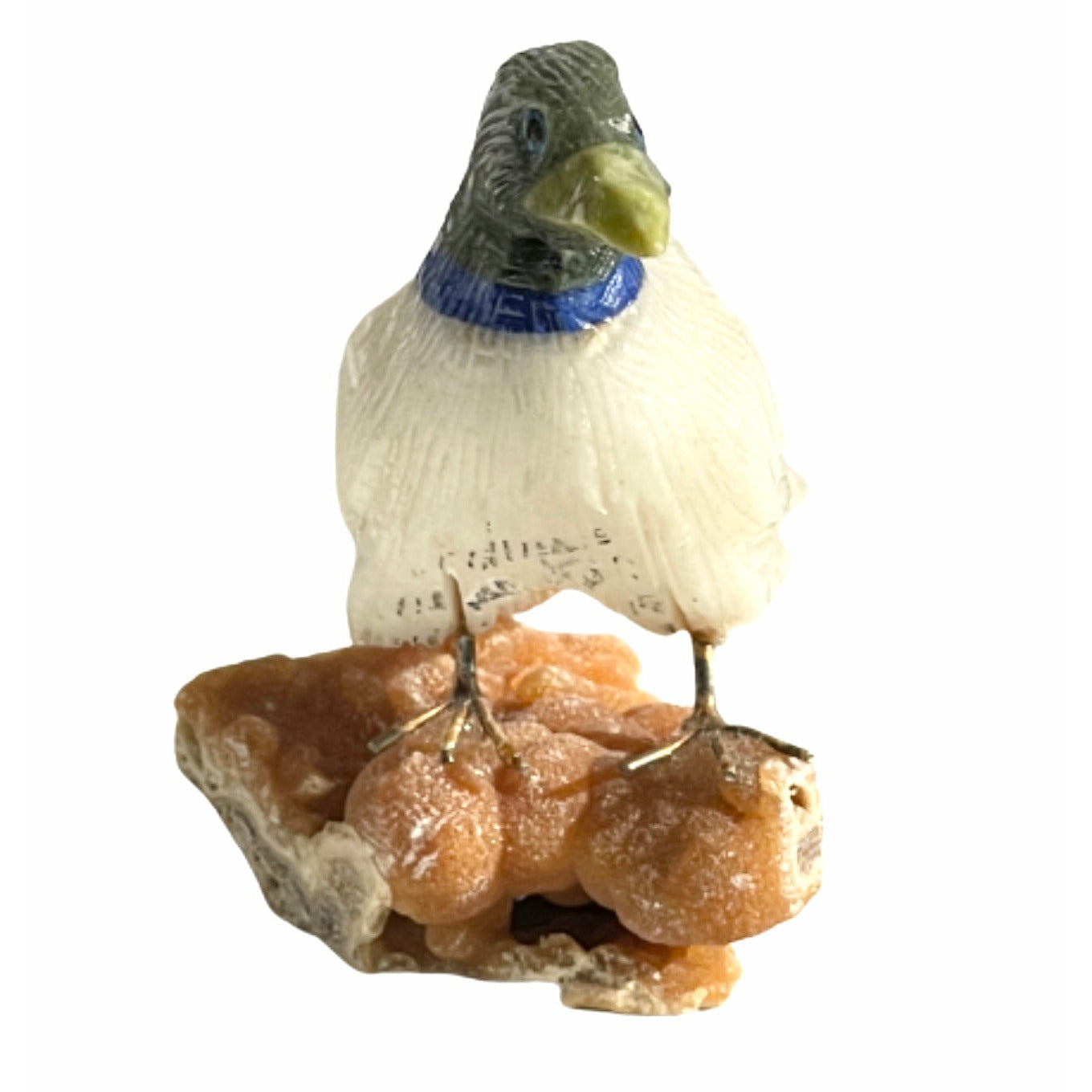 3 Inch American Robin made of Milky Quartz on peach stilbite zeolite crystal base
